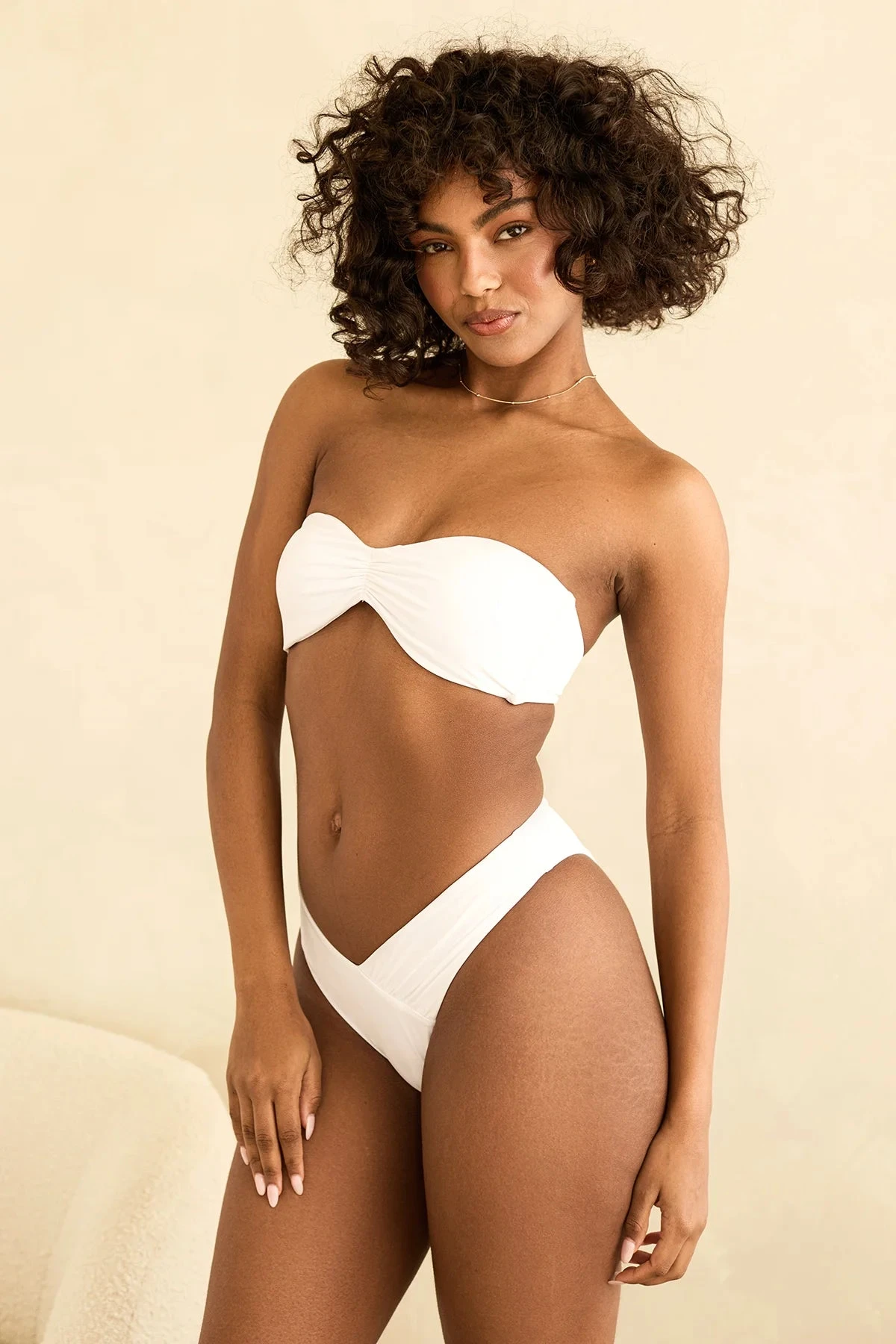 A seamless bandeau-style bikini top with a scrunch detail at the center. Pairs well with our Lucky Skirt for a complete fit.