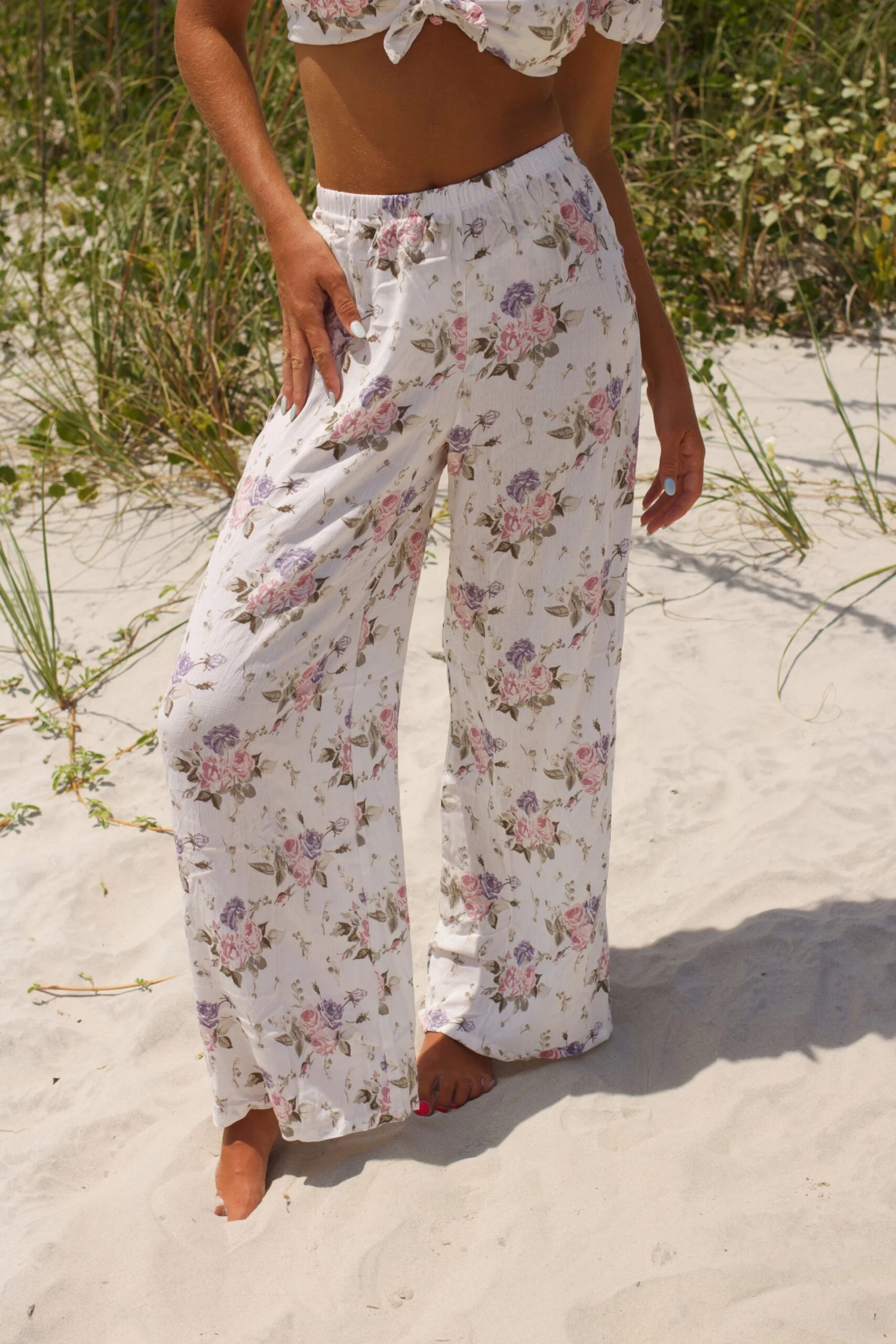 Slip into the Milan Pants and flow freely into your day! With a lightweight and airy material, delicate floral detail, and an elastic waistband, you’ll be stylishly comfortable in a breeze. Enjoy the freedom of movement with a hint of stylish flair!